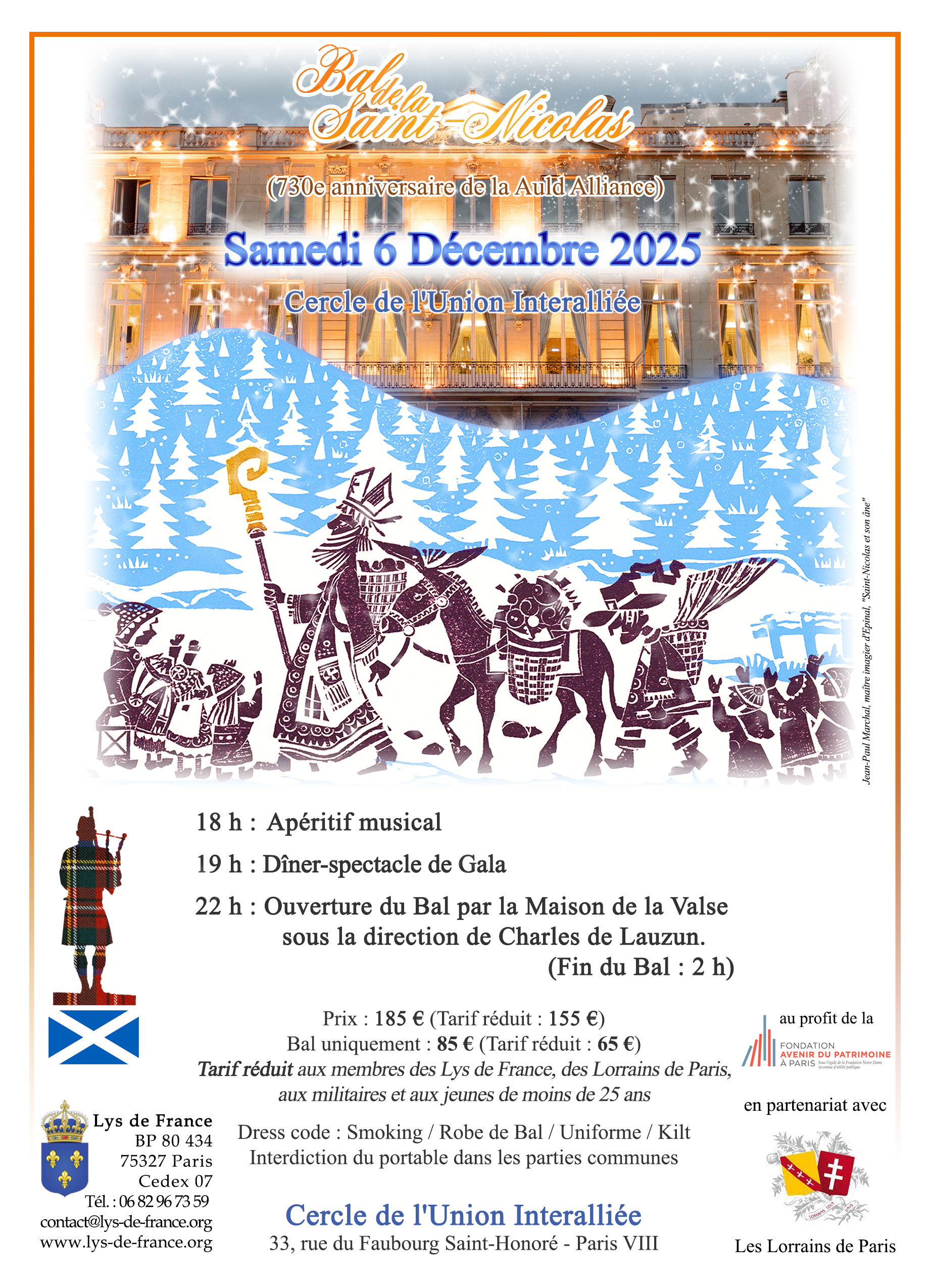 Tarif réduit aux membres des Lys de France, des Lorrains de Paris, aux militaires et aux jeunes de moins de 28 ans.